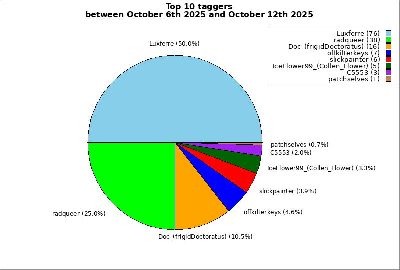 Top 10 taggers between October 6th 2025 and October 12th 2025 | ||