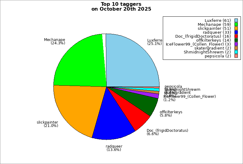 | Top 10 taggers on October 20th 2025 | ||