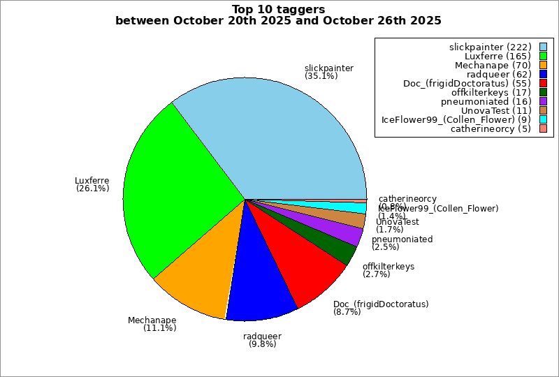 | Top 10 taggers between October 20th 2025 and October 26th 2025 | ||