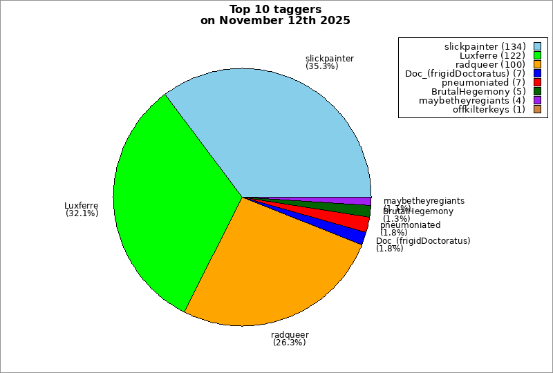 | Top 10 taggers on November 12th 2025 | ||