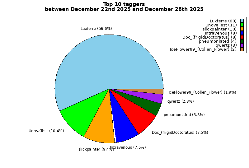 | Top 10 taggers between December 22nd 2025 and December 28th 2025 | ||