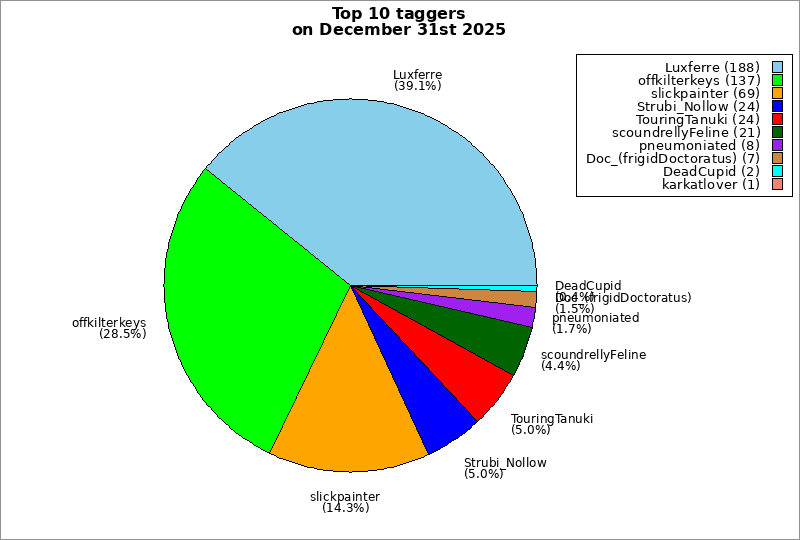 | Top 10 taggers on December 31st 2025 | ||
