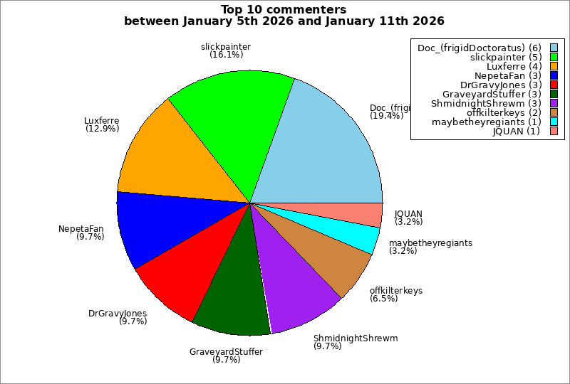| Top 10 commenters between January 5th 2026 and January 11th 2026 | ||