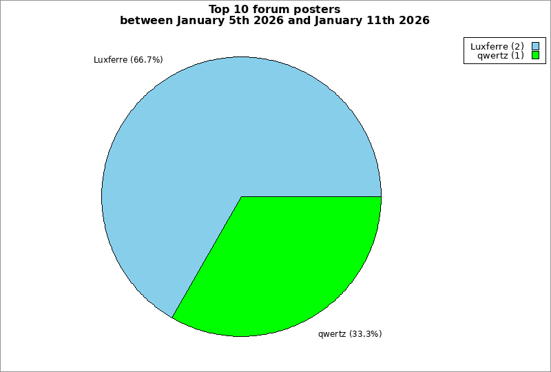 | Top 10 forum posters between January 5th 2026 and January 11th 2026 | ||