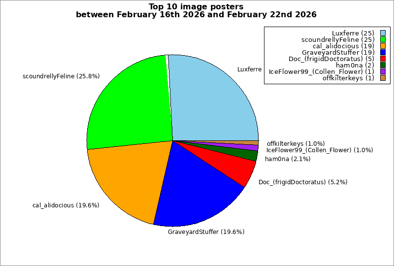 | Top 10 image posters between February 16th 2026 and February 22nd 2026 | ||
