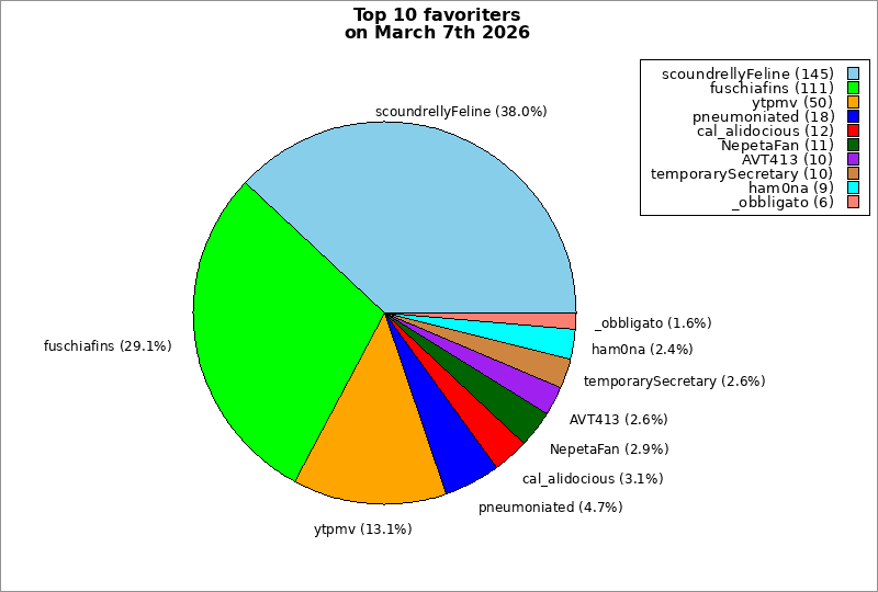 | Top 10 favoriters on March 7th 2026 | ||