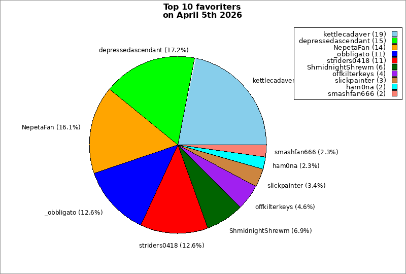 | Top 10 favoriters on April 5th 2026 | ||