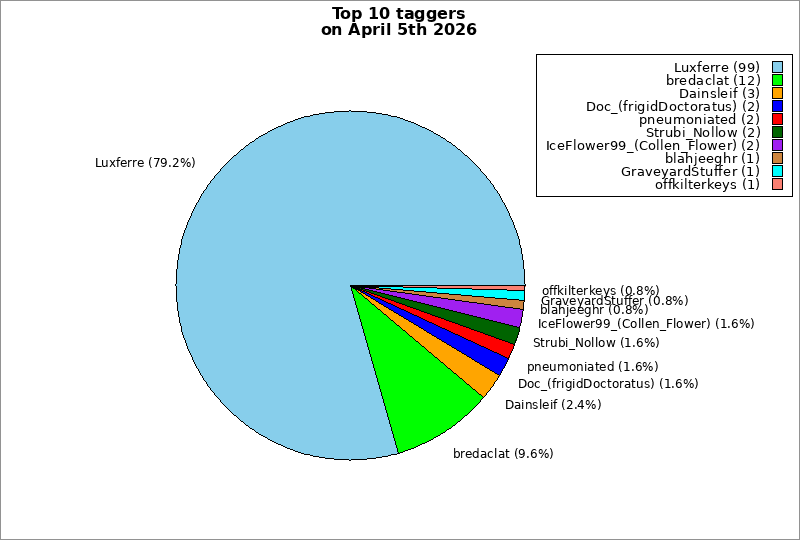 | Top 10 taggers on April 5th 2026 | ||