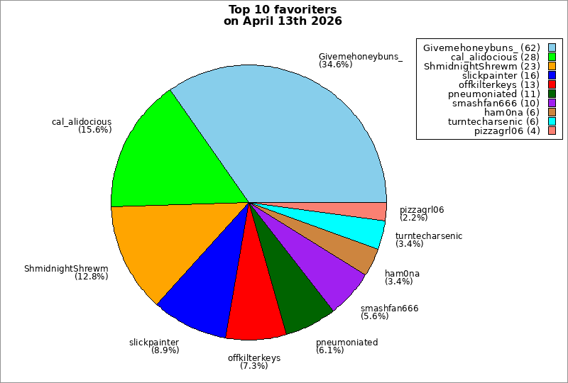 | Top 10 favoriters on April 13th 2026 | ||