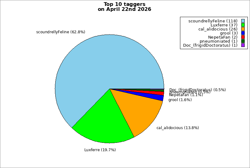 | Top 10 taggers on April 22nd 2026 | ||