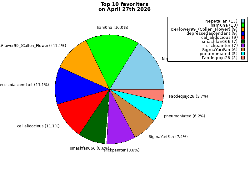 | Top 10 favoriters on April 27th 2026 | ||